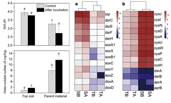 本文主要為了研究在有氧環境下,酸性硫酸鹽土壤中的金屬硫化物被氧化對土壤性質、土壤微生物群落組成及功能基因的影響。