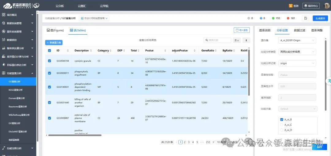 您可按差異篩選、功能富集、目標檢索、自定義上傳等靈活生成蛋白集,輕松實現一鍵化創建目標數據集,極速且高效地針對目標蛋白集進行深入挖掘與可視化分析。