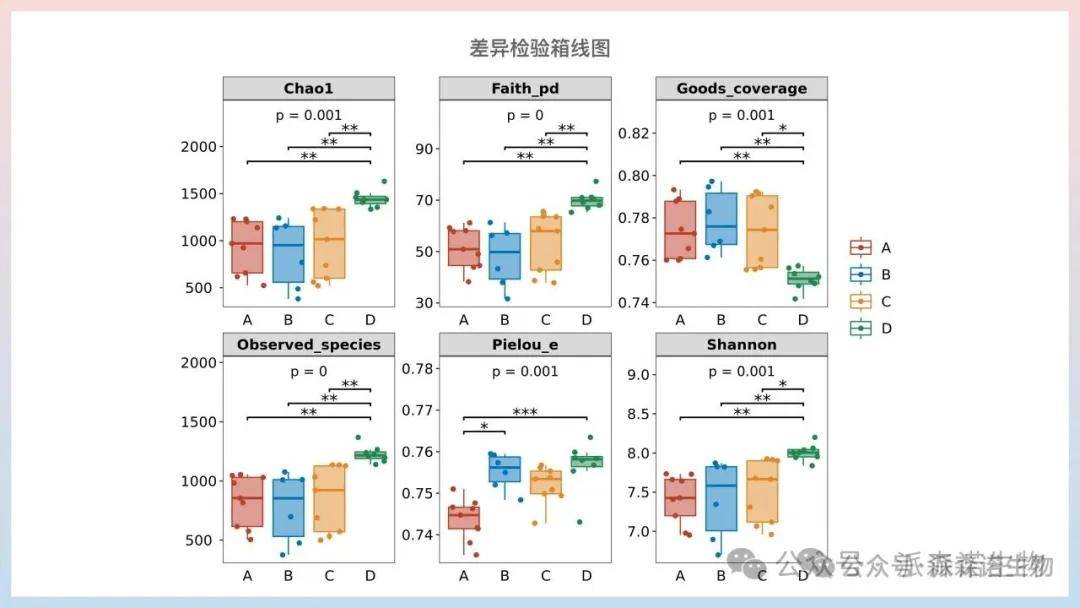 用于比較兩組或多組數據的分布差異,并標注統計顯著性(如P值)。