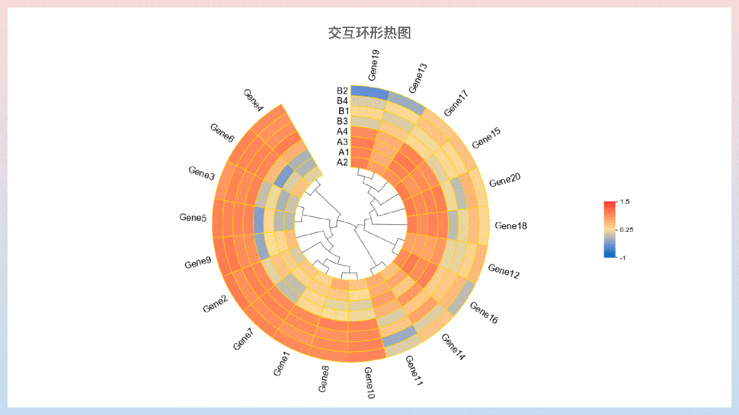 交互環形熱圖:節省空間,適合展示多層級數據(如基因組環狀結構)。