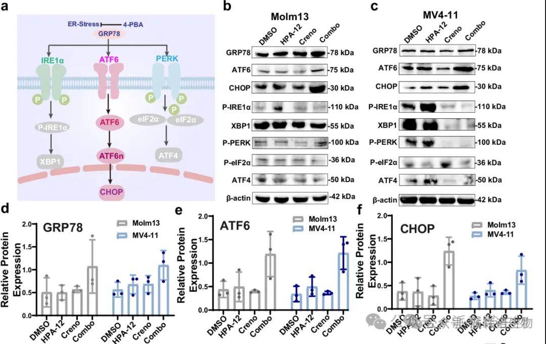 神經酰胺轉移蛋白(CERT)決定細胞中神經酰胺與鞘磷脂的比例,靶向CERT可使實體癌細胞對化療敏感,但在急性髓系白血病(AML)中的作用尚不明確。研究團隊發現,CERT在FLT3-ITD突變的AML細胞中高表達,用HPA-12抑制CERT或基因敲低CERT,可劑量依賴性抑制該類細胞生長并促進凋亡,對FLT3-WT細胞影響小。HPA-12與FLT3抑制劑Creno聯合使用,對FLT3-ITD突變AML細胞的抑制效果顯著優于單藥,具強協同作用,對FLT3-WT細胞呈拮抗。在AML異種移植小鼠中,聯合治療能降低白血病負荷、延長生存期。機制上,聯合治療誘導神經酰胺在細胞內質網積累,激活內質網應激-GRP78/ATF6/CHOP軸和線粒體自噬。靶向CERT與FLT3抑制劑聯用,可通過GRP78-ATF6-CHOP軸和線粒體自噬等機制,增強FLT3抑制劑在AML治療中的療效,為AML治療提供了新的有效策略。
