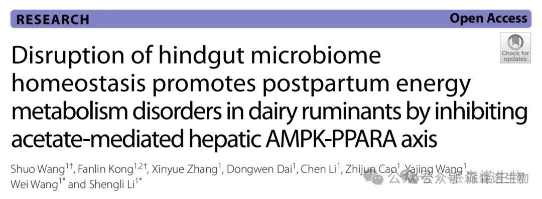 后腸微生物組穩態破壞通過抑制乙酸介導的肝臟AMPK-PPARA軸促進反芻動物產后能量代謝紊亂