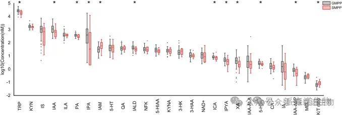 發現隊列和驗證隊列中色氨酸代謝路徑的靶向代謝組學分析