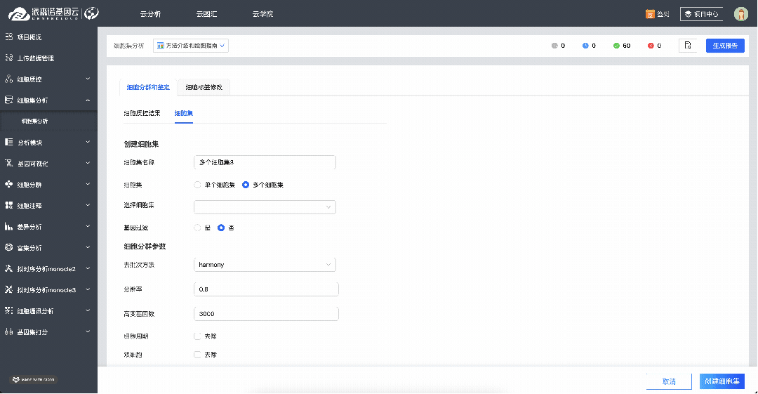 創建方式:可以下拉選擇多個細胞集進行合并分析。