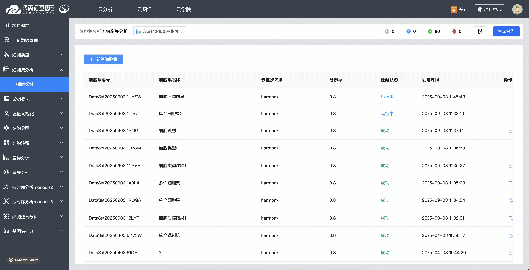 百度搜索“派森諾基因云”或直接訪問官方網站//www.genescloud.cn/home進入平臺。登錄后,點擊“云分析”功能模塊,通過搜索關鍵詞單細胞轉錄組分析,快速找到所需的產品。溫馨提示:平臺現已正式接入DeepSeek-R1滿血版,您可以根據需求切換不同模型進行體驗。在繪圖過程中,如果遇到常見問題,建議先使用PAI繪圖小助手進行自助解決;若有個性化需求或遇到無法解決的問題,歡迎通過【工單中心】與平臺聯系,提出您的需求或建議。派森諾基因云始終秉持“持續創新,不斷升級”的理念,未來將推出更多精美的可視化圖表與實用的分析工具,期待您的使用與反饋!