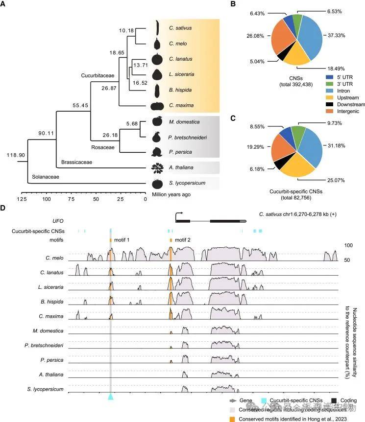 本研究探討了保守順式調控元件(CREs)在葫蘆科作物早期果實發育中的作用及其進化歷史。通過比較基因組學,鑒定出6種葫蘆科作物和5種外類群物種中的392,438個保守非編碼序列(CNSs),其中82,756個為葫蘆科特有。