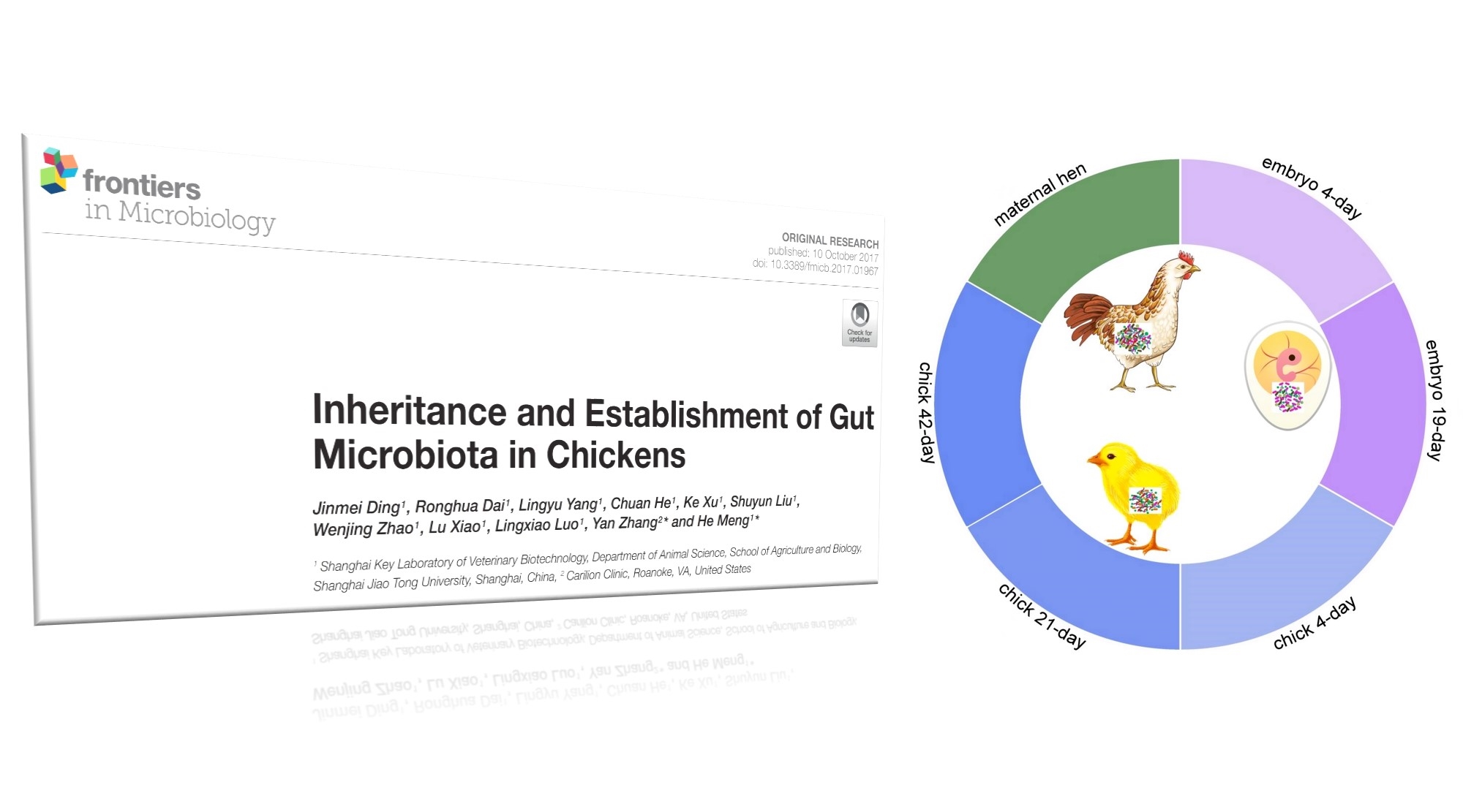 Ding J, Dai R, Yang L, He C, Xu K, Liu S, Zhao W, Xiao L, Luo L, Zhang Y and Meng H (2017) Inheritance and Establishment of Gut Microbiota in Chickens. Frontiers in Microbiology. 8:1967. doi: 10.3389/fmicb.2017.01967