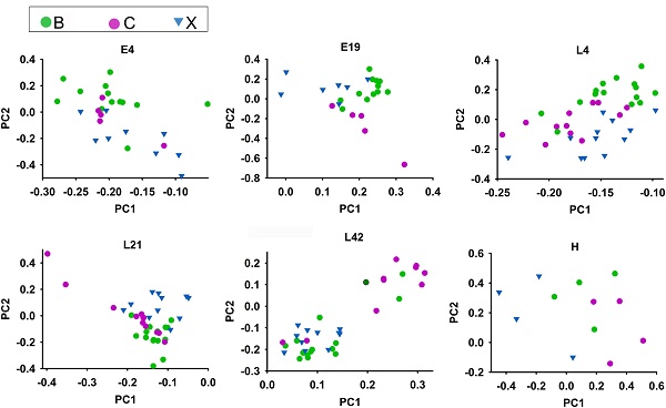 為了衡量遺傳背景對腸道微生態的影響,本研究進一步比較了三個不同品種的雞之間腸道菌群的異同。在相同的飼喂條件下,三種雞的優勢屬相似,94.4%(185/196)的微生物屬都是共有的。對不同發育階段的雞腸道菌群進行Beta多樣性分析,發現4日齡和19日齡時,三種雞的雞胚菌群差異明顯;相比于雞胚,雛雞和母雞時期的三種雞的腸道菌群差異逐漸減小。