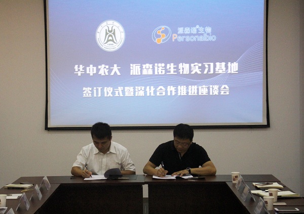 9月18日下午,在公司一樓多功能會議室,華中農大信息學院院長張紅雨教授與公司董事長孫子奎先生正式簽訂協議,標志著又一本科創新人才聯合培養基地落戶公司。作為一所生命科學研究實力居全國前列的代表性高校,華中農業大學生物信息學是近年來發展的重要學科,本科人才培養質量距同類專業前茅。張院長希望校企雙方在既有合作的基礎上,能夠不斷拓展,并從業務咨詢、技術服務和成果轉讓等層面介紹合作思路。孫總對華中農大信息學院長期對公司的支持表示感謝。他結合公司業務發展實際,希望在突出技術服務重點的基礎上,不斷拓展和深化校企合作的內涵,近期將組織公司和學院專家團隊開展具體合作交流。信息學院黨委副書記孫超、輔導員宗明緒分別介紹合作內容和方式。
