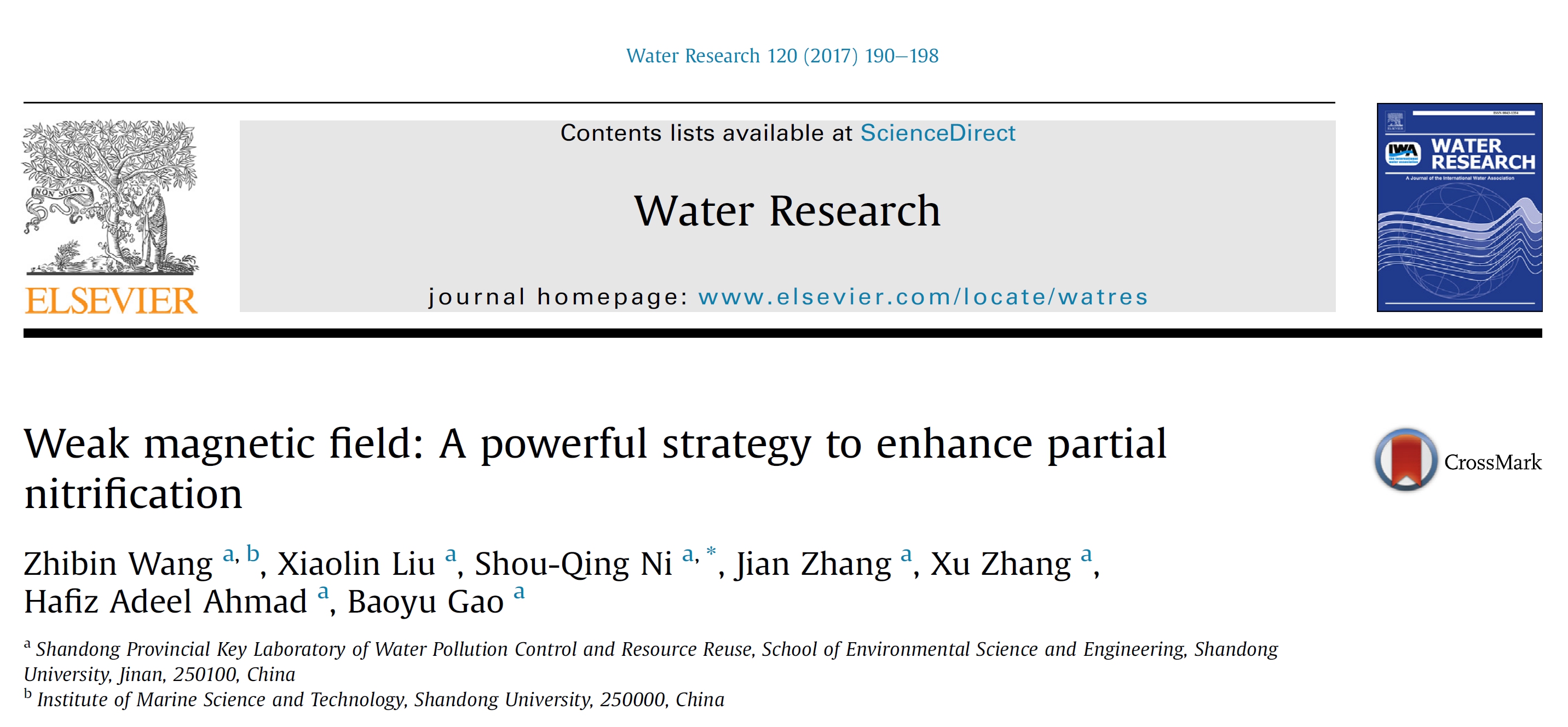 近期,派森諾生物與山東大學合作,在《Water Research》(最新影響因子6.942)發表論文,通過研究不同強度磁場處理下,SBR反應器中活性污泥的生理生化特性和細菌菌群結構變化,探究磁場強度對短程硝化的影響。