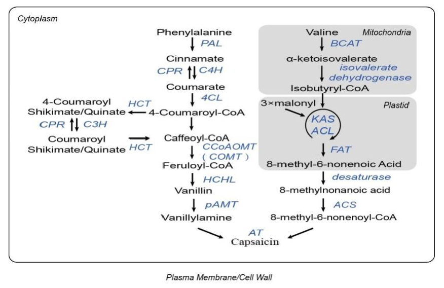 圖1. 辣椒素生物合成通路,來源:文獻補充資料