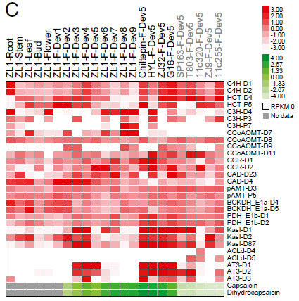 圖4. 辣椒素生物合成相關基因表達模式,來源:文獻原文