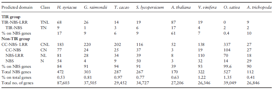 表2. NBS-LRR基因家族數目比較