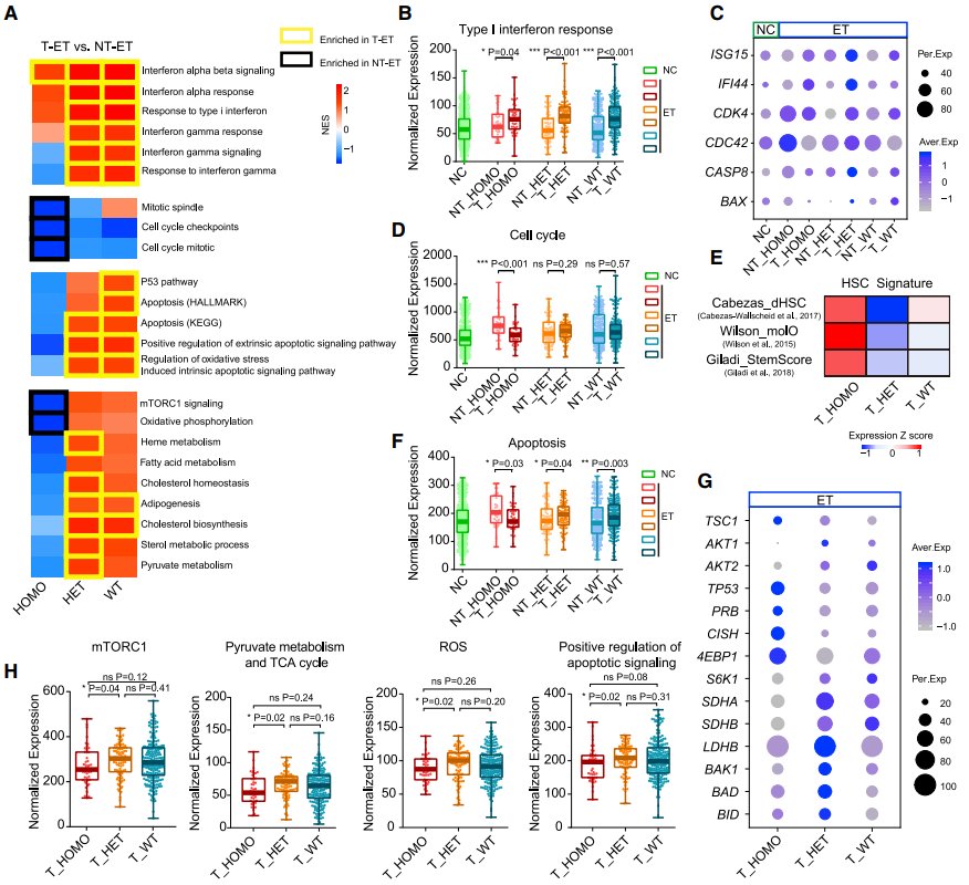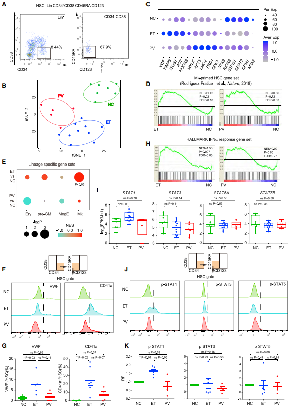 ET-HSC表現出明顯的巨核譜系傾向和IFN信號的上調