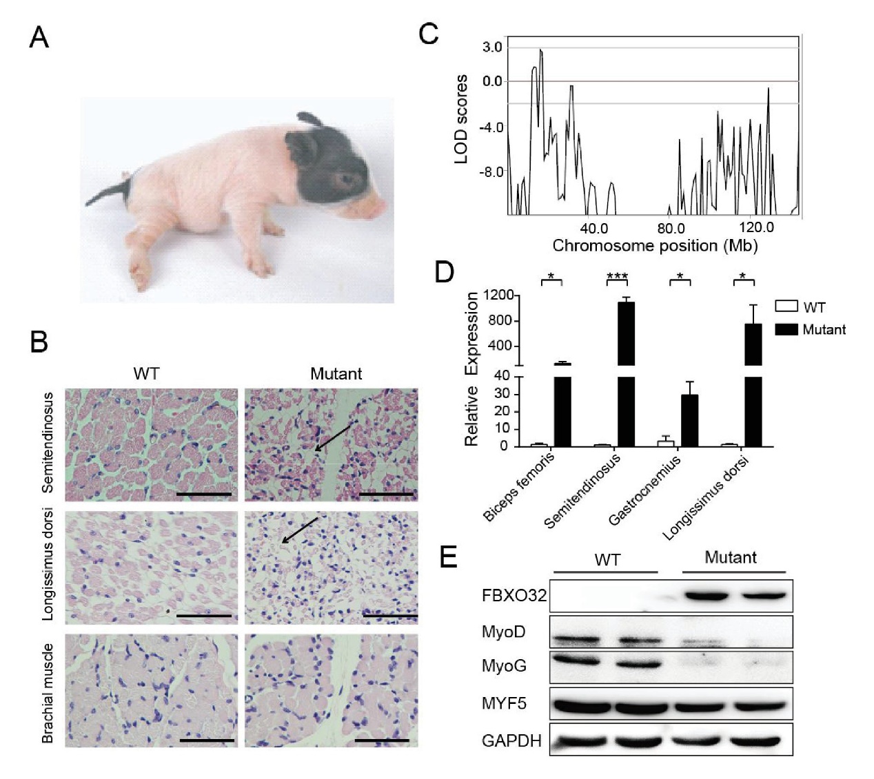 先天性后肢癱瘓是幼豬殘疾的主要原因,在所有后肢癱瘓突變體中,骨骼肌萎縮相關基因—FBXO32高度表達。通過遺傳圖譜分析,在4號染色體16-17Mb區域內發現了強烈的關聯信號,且FBXO32就存在于該區域中,FBXO32的上調可能引起肌肉萎縮并導致后肢癱瘓。