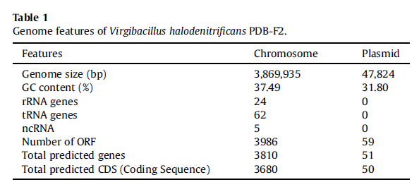 該研究當中完成的對中度嗜鹽菌Virgibacillus halodenitrificans的全基因組測序尚屬首例。