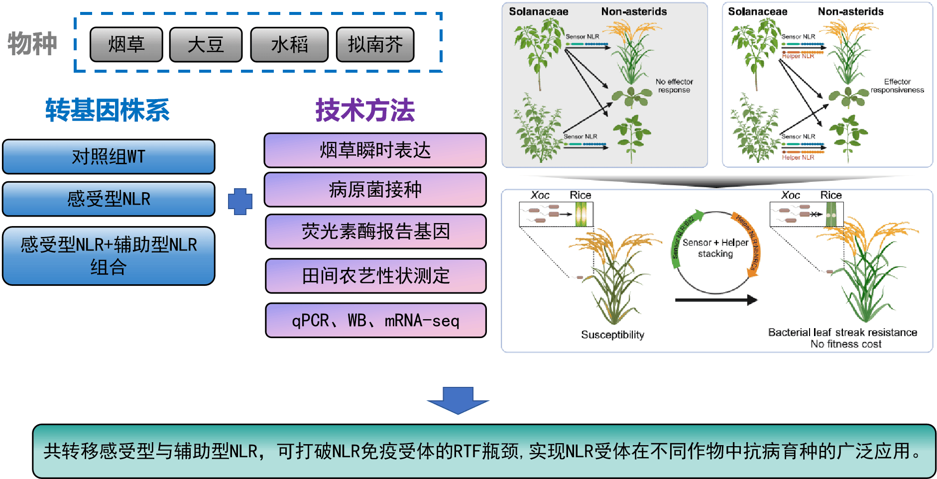 本研究通過共轉移感受型 NLR 和輔助型 NLR,成功實現了在非茄科植物中擴展免疫受體的功能,使這些植物能夠識別并響應原本無法識別的病原菌效應子,從而增強了它們的抗病能力。