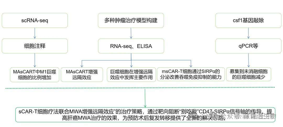 該研究創新性聚焦于未接受消融治療的遠端腫瘤免疫微環境,首次提出 “sCAR-T 細胞療法與 MWA 聯合應用以強化遠隔效應” 的治療方案。該策略通過特異性阻斷 “別吃我” 信號通路中 CD47 與 SIRPα 的相互作用,形成對肝癌 “精準靶向攻擊 + 全域協同清除” 的多層次治療體系,為提升肝癌 MWA 治療效果、降低術后復發轉移風險開辟了新的解決路徑。