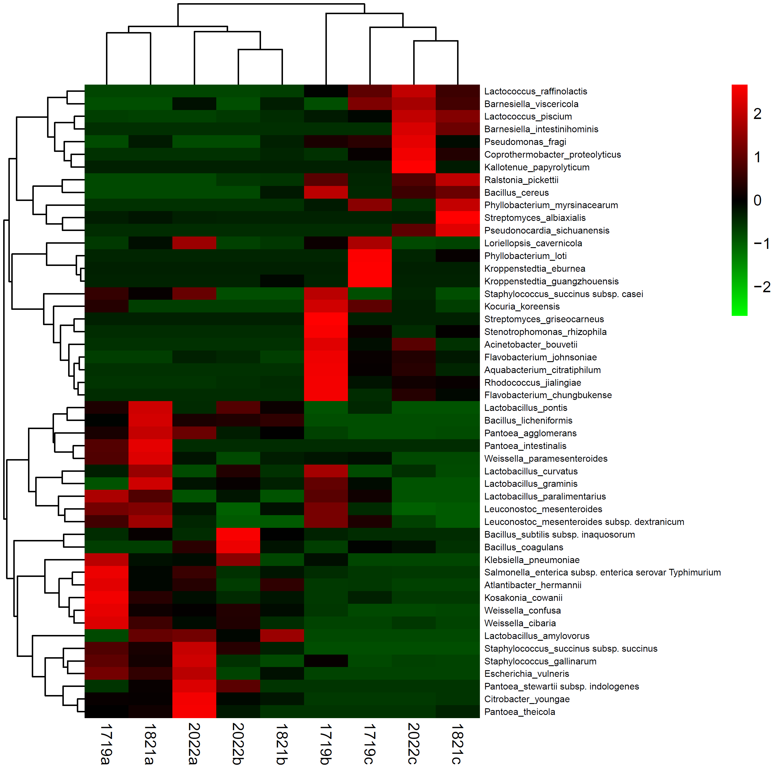 結合聚類分析的種水平菌群組成熱圖