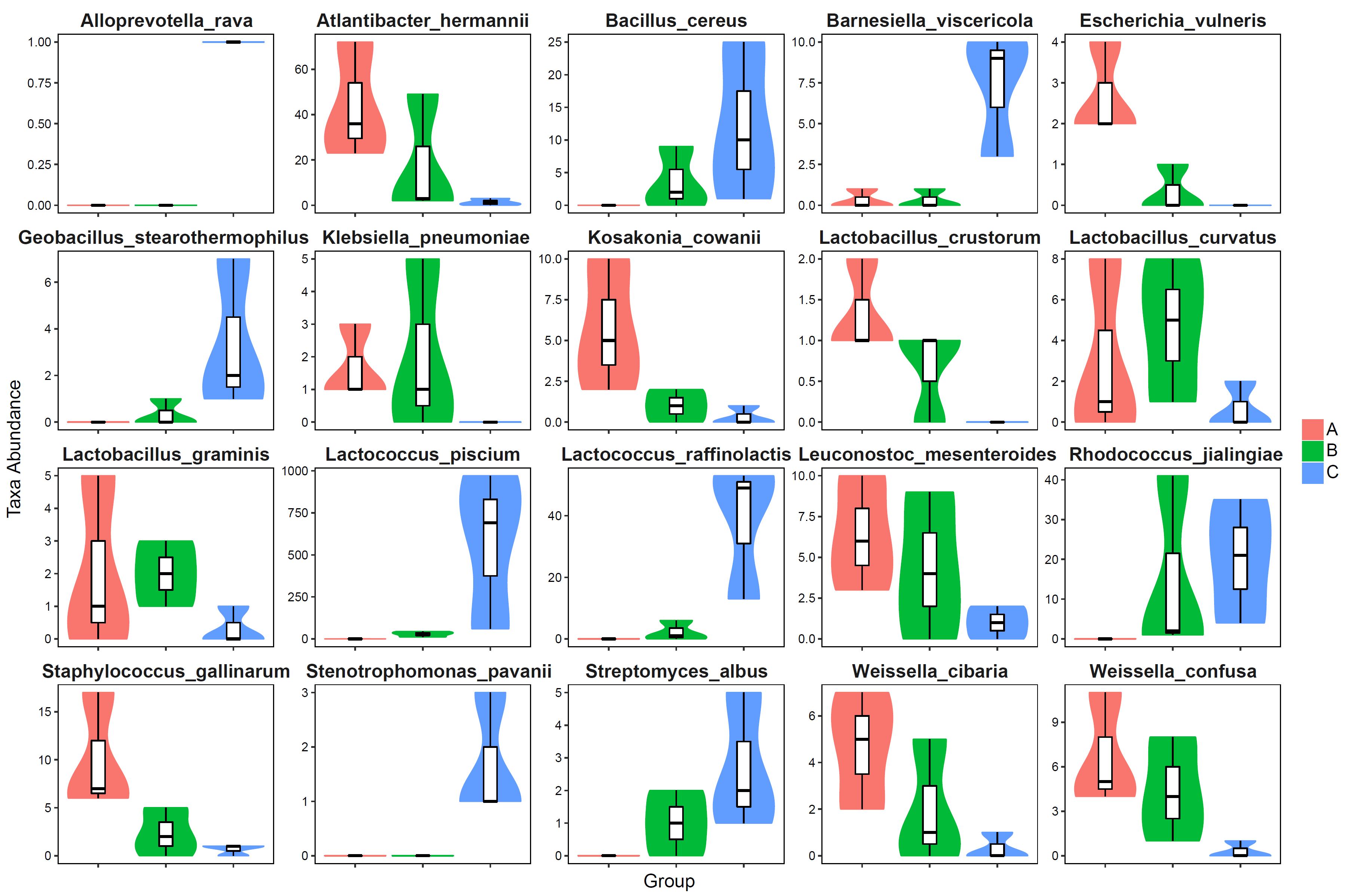 組間差異顯著的種水平分類單元的豐度分布小提琴圖